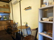 店舗面積は約60平方メートルで、イートイン用の席は4席。主力メニューの抹茶ラテは京都産の抹茶を使った「日和(ひより)」(690円)と「余白(よはく)」(890円)、「一会(いちえ)」(1,490円)の3種で、注文を受けてから抹茶をたてるのが特徴。「ほうじ茶ラテ」(680円)のほうじ茶も石臼でひいた茶葉をたてて作る。